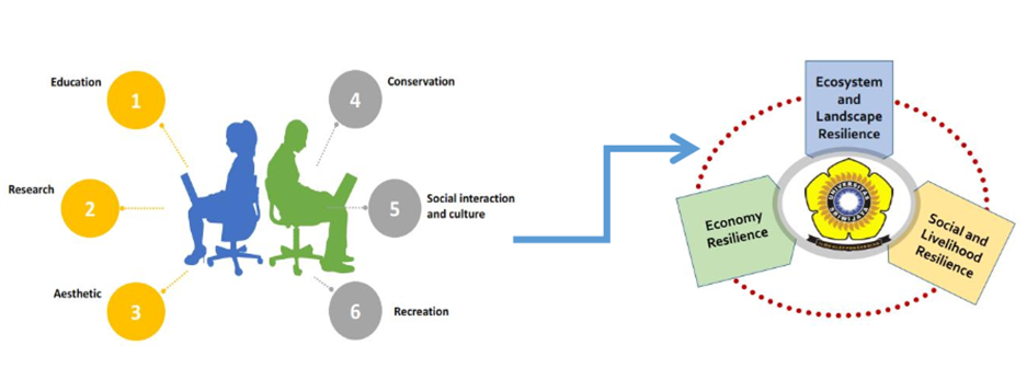 This approach emphasizes the importance of balancing economic, social, and environmental aspects of campus development to create a sustainable and inclusive work environment. Based this concept, the universitas defines 6 important functions of campus, not only as a academic center but also as a place where people are socializing and having recreation. The aims are to: