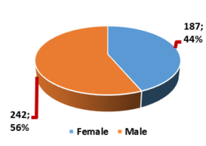 Universitas Sriwijaya also guarantees equal rights to occupy structural positions on campus. In 2023, 429 faculty members served in structural positions such as managers, directors, deans, vice deans, and others. According to Figure 3, 44% of the managers were women, indicating that there is progress towards gender equality in leadership roles at the university. This commitment to providing equal opportunities for all individuals in structural positions contributes to a more inclusive and diverse campus community on campus.