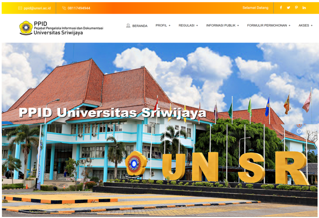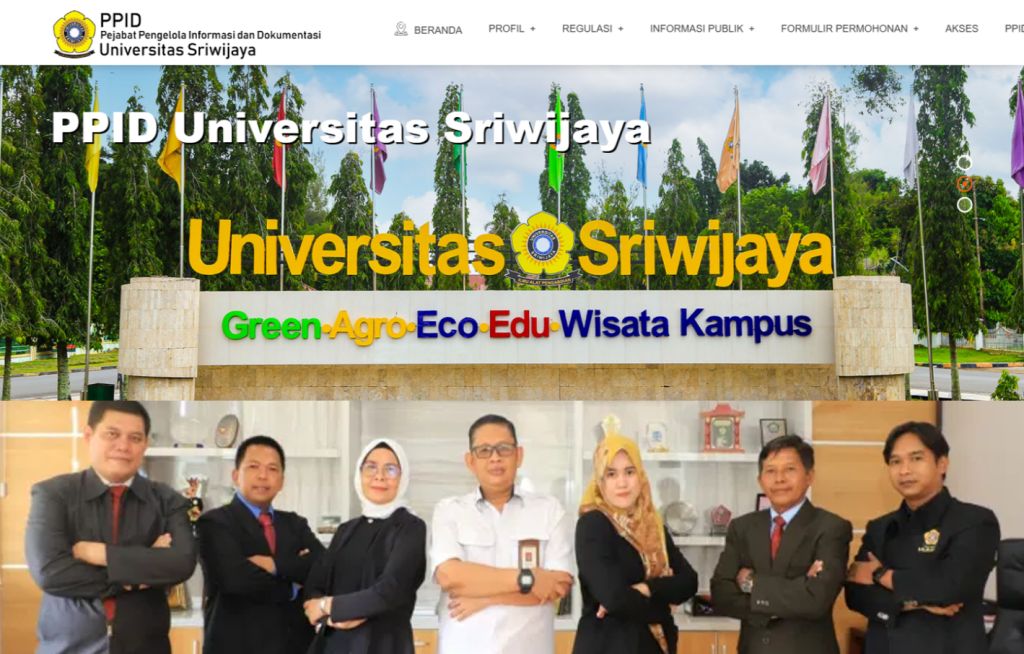 To support the implementation of these laws and regulations, the Universitas Sriwijaya has assigned an Information and Documentation Management Officer (PPID) – https://ppid.unsri.ac.id/. The main mission is to create accurate, responsive and transparent public information services to achieve an excellent and competitive university by 2025.