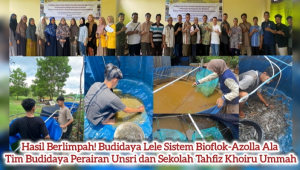 Universitas Sriwijaya is committed to providing education focused on the Sustainable Development Goals (SDGs). One of the collaborative programs conducted by Universitas Sriwijaya is the cooperation between the Aquaculture Study Program and the Khoiru Ummah Tahfiz School, actively participating in developing fish farming innovations in the swamp areas of South Sumatra, including Palembang. The collaboration involves developing a biofloc catfish farming business using swamp probiotics, up to the production of seasoned frozen fish ready to cook.