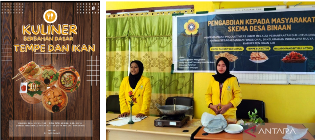 Tempeh has become a part of daily life at Sriwijaya University as a traditional food that is offered in various event menus, seminars, and is available in the student canteen and campus pantry as an option for those who adhere to a vegan lifestyle. UNSRI has also developed various alternatives to increase the value of tempeh by researching alternative substitutes for soybean raw materials with other raw materials that are affordable and still nutritious. For instance, lecturers and students from Faculty of Agricultural Technology who are teaching the production of tempeh from lotus seeds. Another instance, nutrition students and lecturers provides examples of creative menus from Tempe and the recipes was published in a book. Interestingly, Nutrition students not only share about Tempe’s benefit to University students, but also for children and community surrounding Sriwijaya University as well other vegetarian food, such as vegetarian spring rolls.